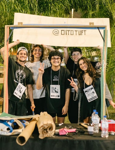 OITOTUFT: A ideia de ter um espaço, formar um time e trabalhar em coisas legais é algo que acompanha cada um do nosso grupo mesmo antes de nos unirmos. A ideia da oito surgiu no final de 2023, quando depois de uma viagem Guga teve a ideia de criar uma lojinha de produtos únicos e o primeiro passo seria vender tapetes. Ele escolheu tapetes por alguns motivos, o primeiro deles era “gerar a notícia”. “Se chegássemos vendendo camisetas, seríamos apenas mais uma marca de roupa, mas se vendêssemos tapetes seríamos únicos e isso automaticamente nos colocaria numa posição de autoridade, aumentando o interesse das pessoas em saber sobre nós”. Chegando em Brasília, Guga procurou seu amigo de infância Gude e contou da sua ideia, Gude animou e os dois começaram a estudar como fazer tapetes.